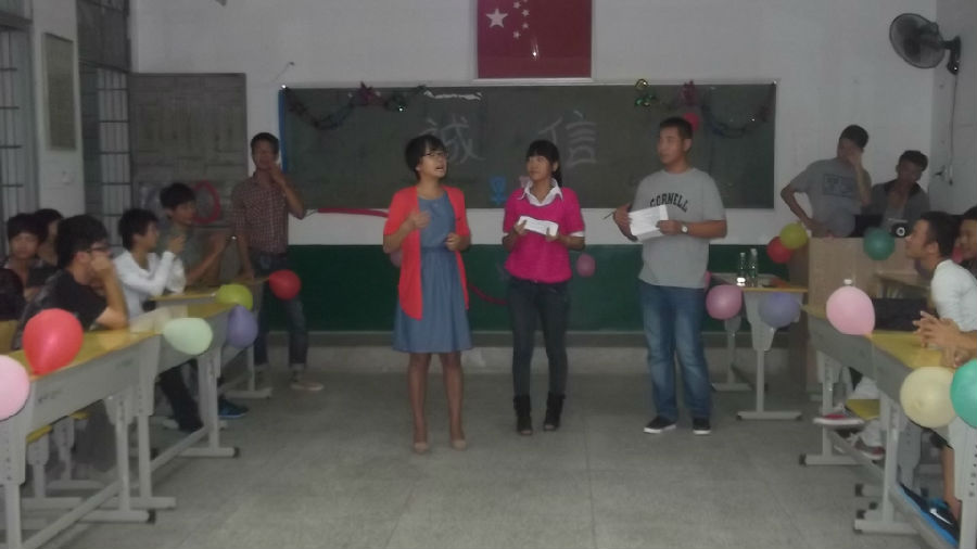 经过精心筹划,全系13级全体新同学正在参加属于他们的第一个大学主题班团会。以“诚信”为主题的班团会,班团会形式不拘一格,内容丰富多彩。学生们通过演讲、歌曲、舞蹈和魔术等形式深入剖析了诚信的重要性以及如何践行诚信。诙谐的表演形式反映出了学生们对诚信的深入思考和对一些现实问题的客观审视。