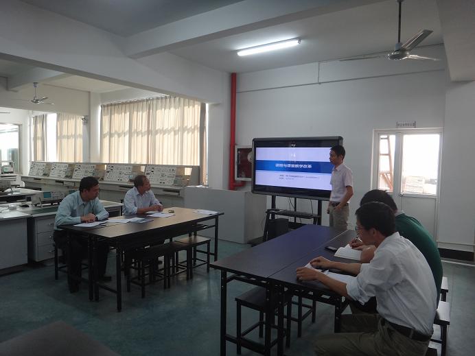 2014年11月4日,彭院长在教务处陈满红陪同下,亲临自动化系参加课改,在自动化系实训中心三楼电子综合实训室听取了相关的课程与课堂教学改革汇报。首先由实训中心主任林寿光从调研学习、企业岗位、课程目标、建设内容四大模块阐述了《电子线路辅助设计》这门课程课改的基本思路和做法以及接下来怎样修改提高等;然后电气自动化教研室主任郑维清汇报了《常用电气控制设备与维修》的课程性质、课程总体改革思路以及课程教学内容、进展情况等;最后系副主任陈辉煌副教授重点简述了PLC这门课程的理实一体化的课改依据、设计、建设理念,强调课程内容设计以工作内容为载体,培养学生“会用”、“怎么用”的能力以及一体化实施中“工作页”实现的重要性。