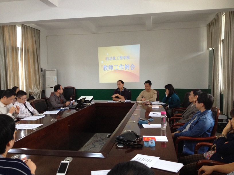 2015年11月3日,自动化系全体教职工在16#204召开教学常规及评估会议。会上,周奇峰书记传达了全院党风廉政建设会议上彭院长及施副书记的讲话,并将相关内容进行具体展开,强调我系一些重要的事情如教师职称评聘、实验室设备采购等要通过党政联席会议集体讨论并要有相关的记录。为了加强安全保卫工作,对我系原有教学督导值班做出调整,每月制定值班安排表并着重强调了值班职责。接着,陈辉煌副主任向全系老师告知关于课程考核改革的相关通知以及期中考试的相关事项,关于补考以后将采取实践考核的形式进行。同时要求教研室主任将上一轮评估缺的较多的专业建设相关材料补齐。最后,佘明辉主任再次强调教学督导值班的重要性,要求老师实行课程改革后,期中期末老师以项目考核并结合技能鉴定考试的方式进行,另外强调了说课程活动的重要性,希望每位老师慎重认真对待。