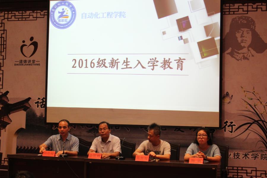 9月4日,自动化工程学院2016级新生入学教育在图书馆会议室隆重举行,主任佘明辉、副主任陈辉煌、书记周奇峰、辅导员杨娴、黄冠峰、社区辅导员等同志开展会议。会上,系书记周奇峰同志代表学院领导对2016级新生的到来表示了热烈欢迎。系主任佘明辉为新生详细介绍了高职教育概况和学院现状,鼓励同学们积极适应大学生活,主动学习,做好未来规划,阳光生活,快乐成长,学有所获,学有所长,今后成为社会的精英和栋梁。