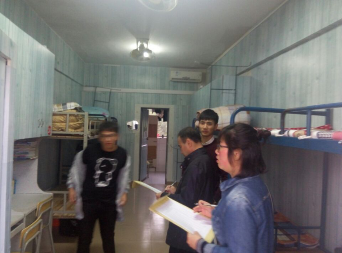 评委老师们在对宿舍进行打分