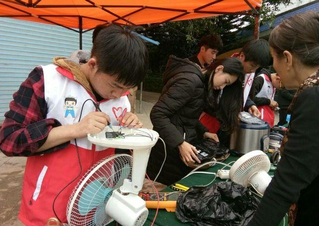 同学们积极的维修电器