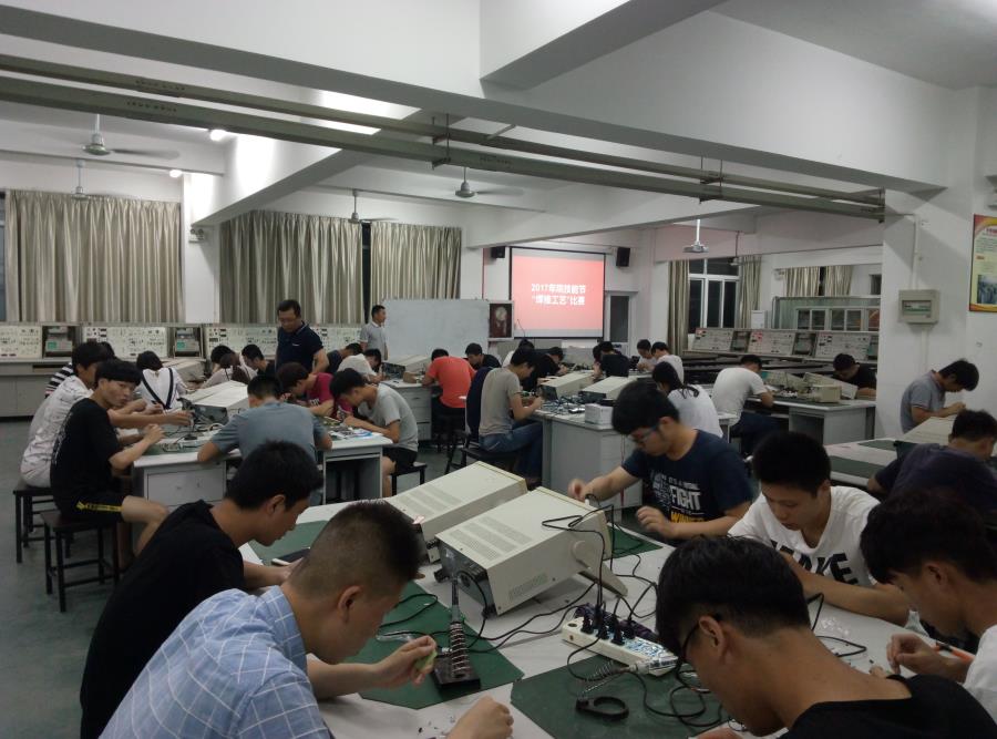 5月24日,2017年院技能比赛“焊接工艺”项目在自动化实训中心电子技术理实一体实训室举行。共有48位同学报名参加。该竞赛项目通过制作“模拟电子蜡烛”来考核学生的电子技术制作能力,最终评选出了一等奖5名,二等奖9名,三等奖14名。