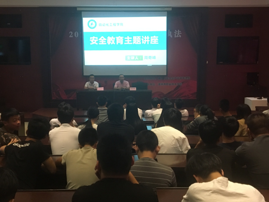 为了提高2017级新生在校学习生活的安全意识,共建和谐校园。2017年9月14日上午,自动化工程学院在图书馆一楼会议室举办了2017级新生的入学安全主题教育讲座,由我系书记周奇峰老师主讲。参加讲座的有2017级辅导员吴东东老师及全体新生。会议由2017级辅导员吴东东老师主持。