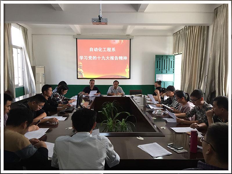 为深入学习、领会、贯彻党的十九大会议精神,不忘初心、牢记使命,发挥党员先锋模范作用,11月9日,自动化工程系召开了“学习党的十九大精神”主题党日活动,系书记周奇峰同志和系全体党员一起参加了活动。