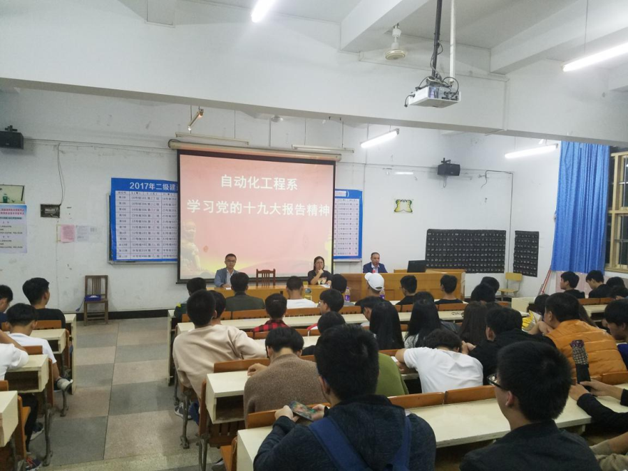 为了学习贯彻十九大精神,11月12日,自动化工程系在17号楼102教室召开了学习党的十九大报告精神大会。此次大会由系书记周奇峰主持会议并发表讲话,自动化工程系全体学生参加此次大会。