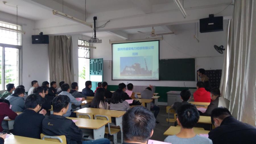 2017年11月21日,我系2017年的第二场专场招聘会在系部教学楼16#301召开,本次招聘会的主办方为自动化工程系和泉州盛荣电力检修有限公司。我系电气自动化等专业的四十多名学生积极响应,参加了此次招聘会。