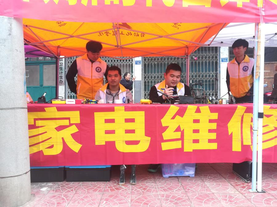 当日,多名学生志愿者的参与为“志愿者活动”的到来营造了浓浓的志愿服务氛围。在分配完工作后,志愿者们一字排开在每个摊位上,不仅为市民提供免费的电器维修,还普及一些常见的电路知识与电路安全问题等便民服务,让“父老乡亲”们在修理家电的同时还能学习一些电路知识,市民们对此次活动的内容赞不绝口。