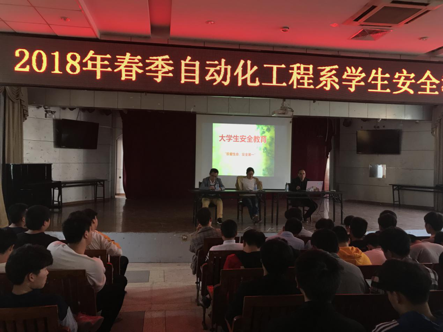 2018年3月29日下午4点自动化工程系在我校17号楼201会议报告厅举行以安全防范会主题的安全教育大会,会议由书记周奇峰主持。