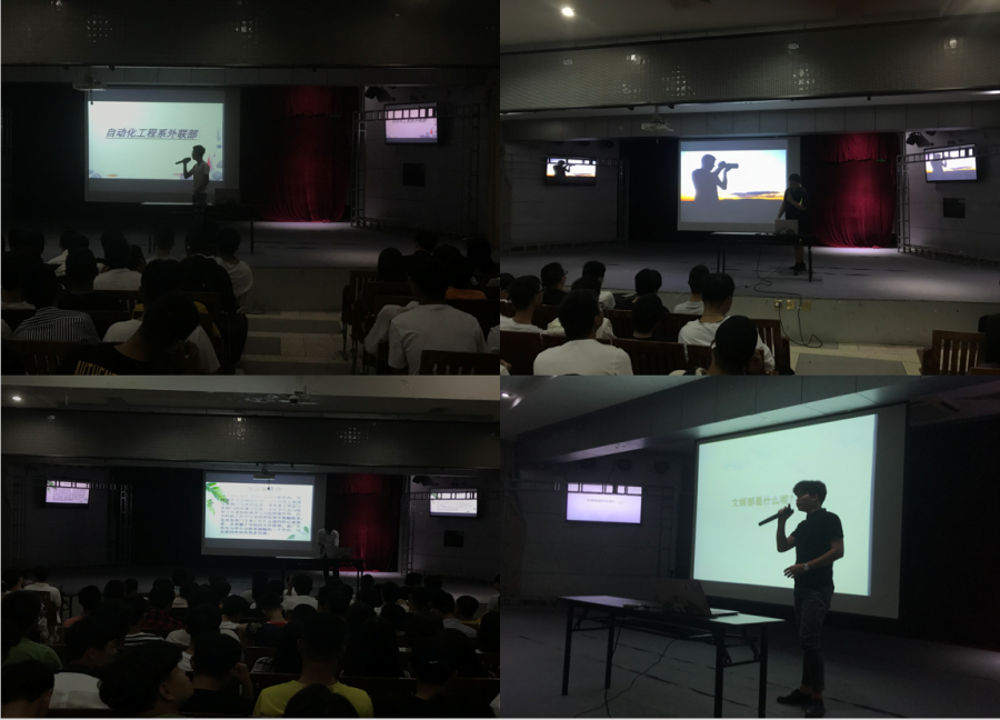 本次大会由自动化工程系学生会主持召开,会上,来自自动化工程系学生会的微湄部、体育部、外联部、学纪部、办公室、文娱部、生劳部、宣传部、组织部等相关学生会部门在会上依次对本部门做了详细的介绍。