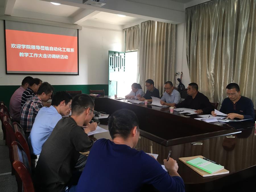 10月24日下午,任清华副院长带队到自动化工程系就示范校建设项目进展情况进行调研。系部主任、书记、副主任,各教研室主任、实训中心主任出席会议。调研中,教务处就示范校评估要点作了解读,要求系部对标对点,逐点逐项做好材料整理工作。 随后,任副院长在认真听取了自动化工程系佘明辉主任及陈辉煌副主任关于近段时间项目开展情况汇报后强调说明,要求系部全体老师一起努力,确实做好示范校的各项工作。 最后,任副院长为现场所有的党员教师上了题为《用铁的纪律管党治党》专题党课,要求全体教师要充分认识加强党的纪律建设的极端重要性,进一步增强遵守党的纪律的自觉性,推动全面从严治党向纵深发展。