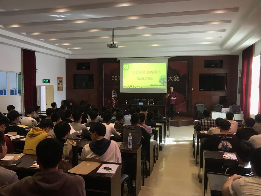 2018年12月6日上午10点,自动化工程系在图书馆一层发起拒绝毒品珍爱生命教育大会,本次大会由陈满红书记主持及全体即将毕业的大三学生们。