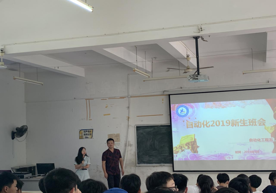 2019年9月8日,在2019级新生完成入学报到后,自动化工程系于8日下午组织各班开展了入学后的第一次班会。此次班会在本16#号教学楼和17号楼101教室举行,四位班主任老师邱兴阳、欧海宁、郑维清、黄丽丽主持了各班的班会。