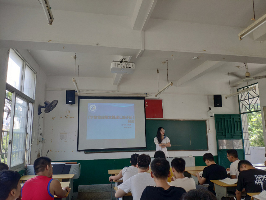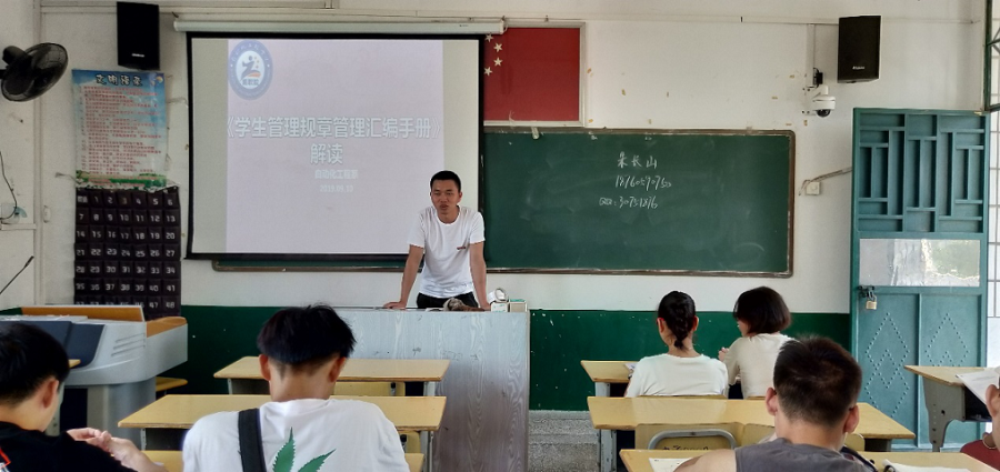 2019年9月10日,自动化工程系在16#205召开关于《学生管理规章制度汇编》的讨论。参与此次会议的有自动化工程系书记陈满红、2019级新生辅导员黄丽丽、2018级辅导员朱长山。