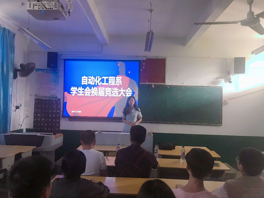 2019年10月17日晚19:00,自动化工程系学生会正、副部长竞选在16#205教室举办。参加此次会议的有自动化工程系陈满红书记、18级辅导员朱长山、19级辅导员黄丽丽以及学生会主席团代表林梓航等。