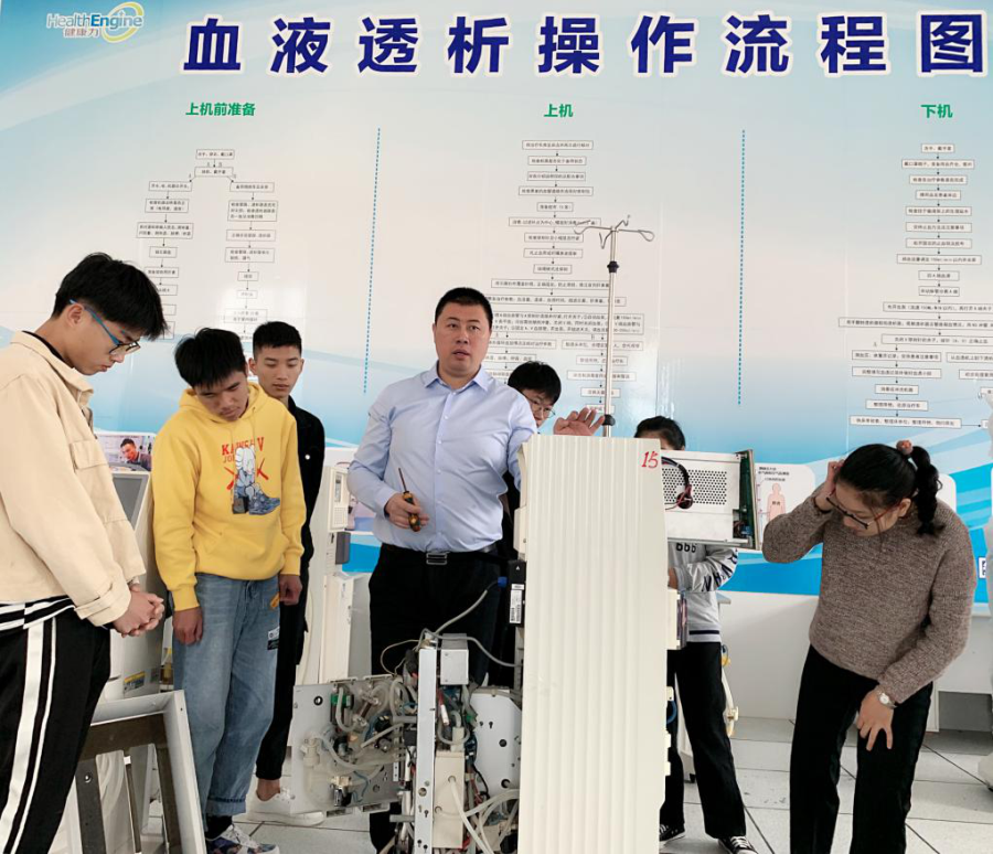 2019年11月20日,为全面响应国家政策,扎实推进校企合作,探讨人才培养新模式,建立校企合作人才培养长效机制,致力于服务地方经济社会发展,主动融入产业转型升级,为社会、行业、企业培养所需的高素质技术技能型人才,健康力(北京)医疗科技有限公司携手湄职院开展血液透析实操培训课程,由健康力董老师为湄职院学生授课,进一步提升学生对血液透析机的操作和管理能力,规范学生的操作方法,降低血液透析机因人为操作不当导致的故障,提高学生的动手维修能力,及时解决设备故障问题;同时树立学生对设备进行科学化、规范化管理意识,提升设备运行安全性。本次血液透析机培训的顺利开展,对于充分发挥校企双方优势,进一步深化探索招生、教学、实训、实习、就业等人才培养模式改革有着十分深远的意义。