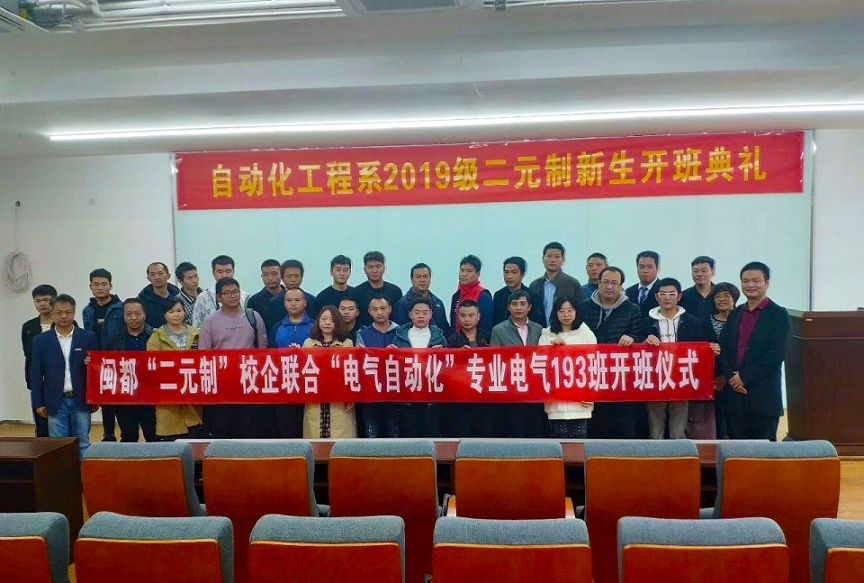 11月28日下午,闽都“二元制”校企联合自动化工程系在行政楼403成功举办新生开班典礼。学院教务处处长李智仁、自动化工程系主任佘明辉、自动化工程系副主任陈辉煌、福州中美达机电设备有限公司代表詹良友经理等出席了开班典礼。开班典礼由自动化工程系书记陈满红主持。