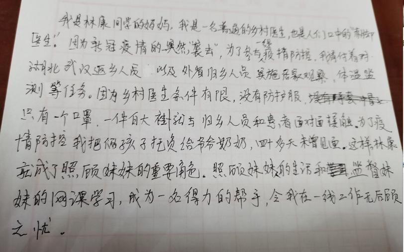 面对疫情,医务人员、疾控工作者、社区志愿者者都是勇敢的逆行者,他们救死扶伤,是人民健康的守护者,是真相的探寻者,是不忘初心、牢记使命的践行者。他们就是疫情面前的最美中国人!恰好,在我们自动化工程系的同学们身边就出现了这么一位最美逆行者,她就是电气201班林康的母亲。爱的告战役母,爱的告白