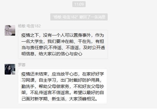时间一转眼到了五月底,经历了一段“疫情长假”后,复学在即。自动化工程系辅导员们担心同学们从“宅家”到“复学”后会引起各种的心理不适,组织开展了“用‘心’战‘疫’”的主题活动,通过线上的心理辅导,了解学生们对复学产生的心理压力和困惑,解决学生们提出的问题,将同学们的心态调整好,顺利迎接复学的到来。
