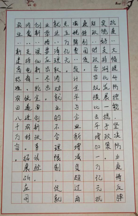 书写能够反映中华优秀传统文化、革命文化和社会主义先进文化的中华经典诗文、中国成语、警句或中华古今名人名言,以及展现全面建成小康社会成就和打赢疫情防控阻击战正能量的内容。