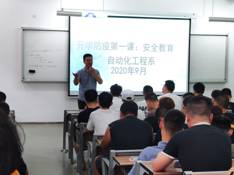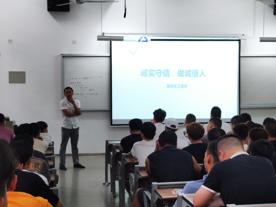 9月13号上午十点自动化工程系在信息楼召开复学第一讲,全系同学无一缺席,陈满红书记、辅导员黄丽丽和朱长山共同主持了本次会议。
