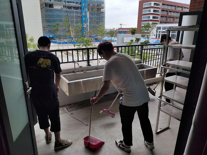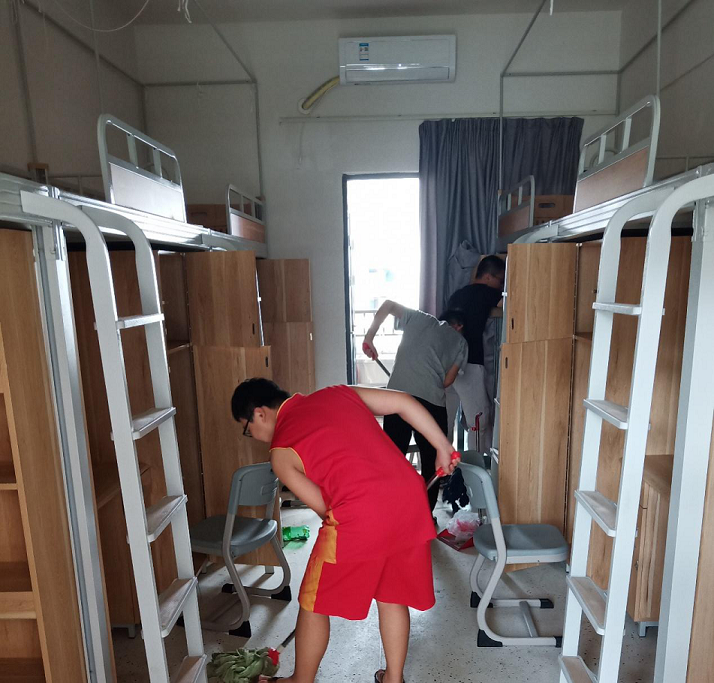 陈导带领志愿者到达指定宿舍后,所有成员分工明确、密切配合,将宿舍的地面、桌面进行清洁。清扫过程中,志愿者们打扫细致入微,从阳台到洗手间,从书桌到橱柜,对房间里的每一个细节之处都进行了仔细的打扫,并对地面、窗户进行清洁。在所有志愿者的共同努力下,全体新生宿舍面貌焕然一新。随后,学生们让组长对其打扫成果进行验收,确保环境干净整洁后,有序离场,并对门窗进行关锁,确保宿舍安全。