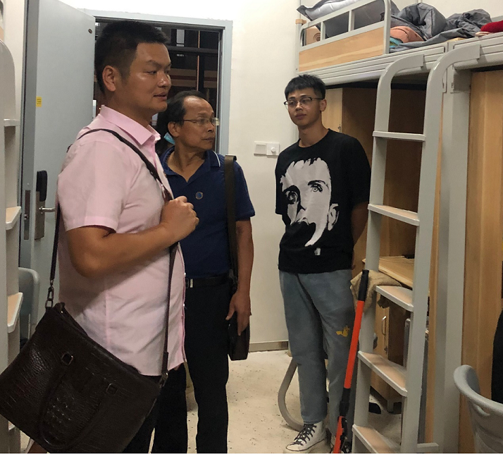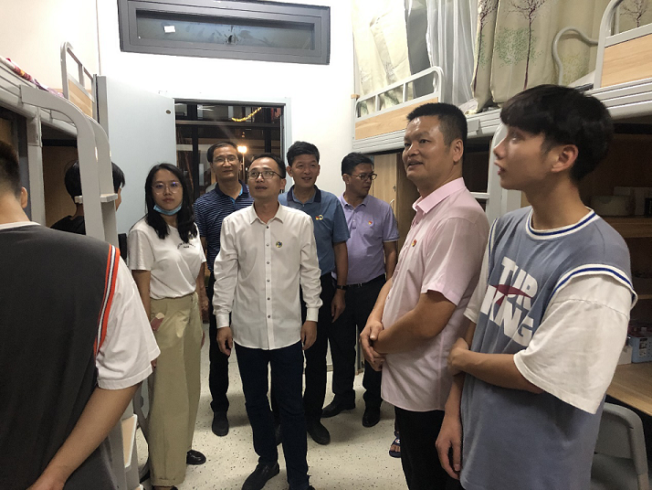 为了解新生报道和寝室入住情况,引导他们建立良好的卫生习惯和用电习惯,10月15日晚,湄洲湾职业技术学院副院长任清华、监察室主任阮春高、党工部部长张凡、学工处处长陈凯等领导莅临自动化工程系新生宿舍走访调研;系主任佘明辉、书记陈满红、2020级辅导员陈静宜以及部分学生干部,一同前往新生宿舍进行查寝,对入住新生进行查访和问候。