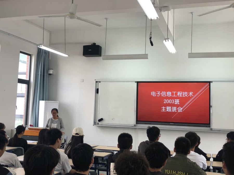 随着新生入学工作的推进,我系在2020年10月17日上午在公教楼和信息楼,分别开展了新生主题班会。本次班会由电气2002班班主任陈静宜、电气2003班班主任肖淑琴、工业机器人2001黄松峰、电子信息2002班班主任陈丽霞、医疗设备2001班班主任邱祥、电子信息技术2003班班主任赵立琼负责主持,全体新生均出席班会。