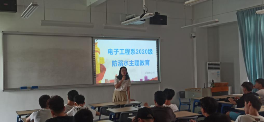 随着炎炎夏日临近,我校游泳馆逐步开放,为增强学生防溺水意识,掌握防溺水知识技能,保证学生生命安全,电子工程系于2021年6月15日开展防溺水主题教育,辅导员陈静宜为此次主题教育的主讲人。