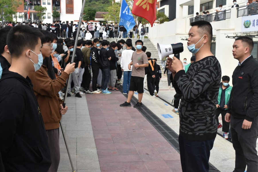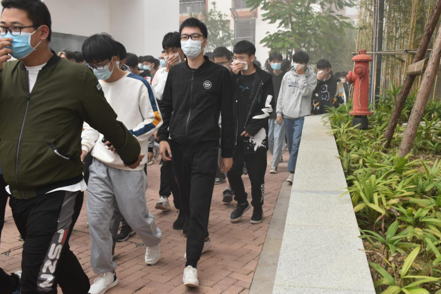 下午两点,随着警钟的响起,消防演练正式开始,同学们有条不紊的弯着腰小步快走,沿着预定好的疏散路线,有条不紊的撤离至户外安全地带。到达安全区域后,志愿者及时清点人数,各班级集合完毕后向总指挥汇报,全校师生安全疏散,整个过程紧张有序,实用性强,达到了预期效果。
