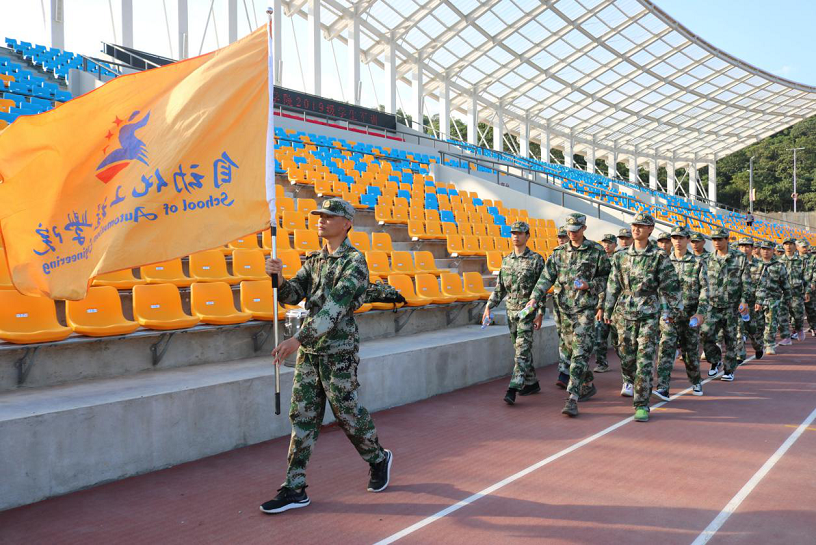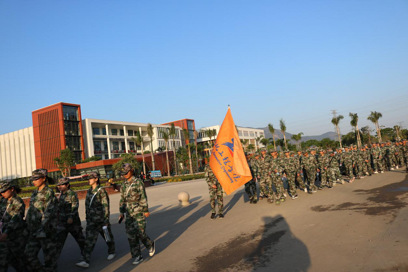 为培养学生们的团队意识及合作精神,激发学生艰苦奋斗、挑战自我的勇气,丰富和深化军训内容。10月30号下午,学生们在教官的带领下,走出校门,沿着湄园后山进行了五公里的拉练。