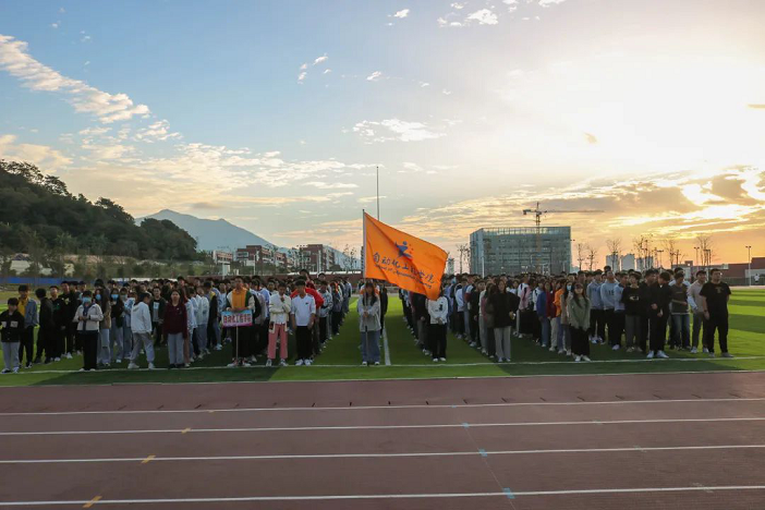 在书记的一声向左转的命令后,同学们便迎着朝阳,以方阵形式陆续地绕着操场奔跑,带着系旗一起体会阳光,体验跑步的乐趣。跑步是一个过程,一个享受的过程,沐浴朝阳,享受耳边的习习凉风,让我们一起奔跑,给生命另一抹亮丽的色彩。