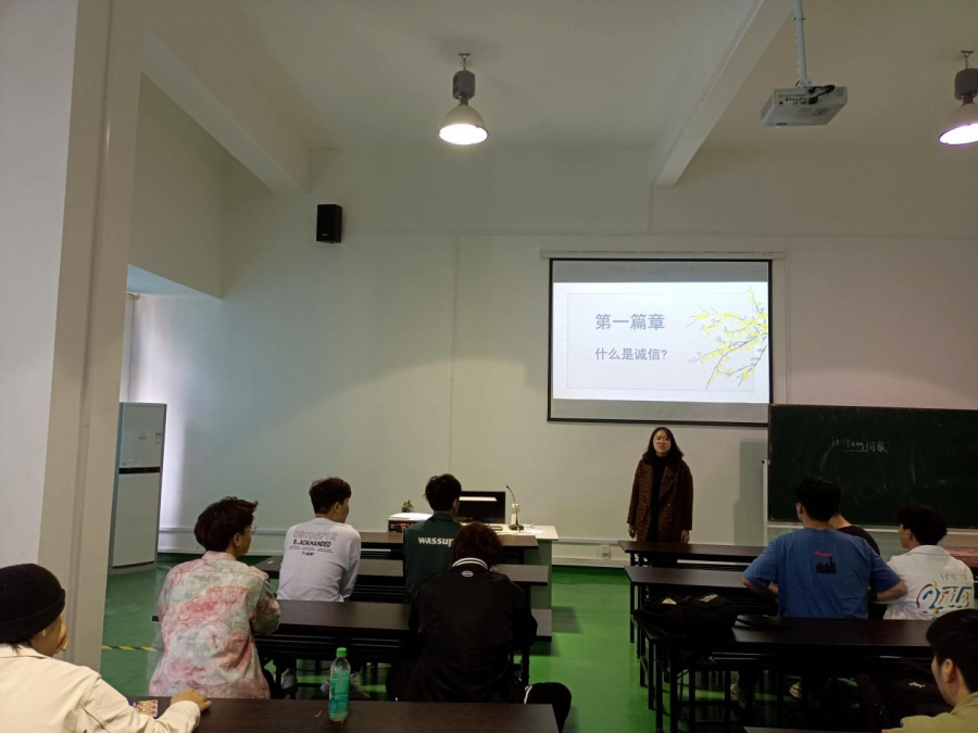 为了加强学生的诚信教育,养成诚信做人、诚信做事的良好习惯,践行社会主义核心价值观,建设诚信校园。自动化工程系于2021年3月18日,在机电楼南204召开“诚以立身,信以立德”主题班会,会议由辅导员陈静宜主持。首先,辅导员陈静宜对新生们科普了如今信用在社会上的重要性,放映几部有关诚信教育的纪录片。