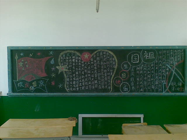 我系宣传部开展了以 “爱祖国 欢庆国庆” 为主题的黑板报,此次活动主要是让大一新生感受下出黑板报的流程和我系宣传部对黑板报的评分标准,也为了宣扬爱祖国是每一个公民义不容辞的责任;爱祖国就要把祖国时刻装在心里,时刻与祖国母亲同命运,共呼吸;爱祖国就要从身边的小事做起,用自己的一言一行为祖国母亲增光添彩。