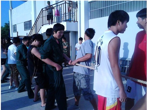 9月16号下午四点半第十届运动会拔河比赛首场比赛准时开始。比赛一开始欢呼声、跺脚声就融成一片。选手们鼓足了劲,面红耳赤,咬紧了牙,用力抓紧大麻绳使劲往后拉,各系组织成立自己的拉拉队,为各系比赛队伍加油、助威、呐喊。自动化工程系的参赛队伍,激情昂扬,在赛场上奋力拼搏,此时此刻,我们心紧紧连在一起,心里有着共同的目标,为了共同的目标,我们一起努力一起奋斗着。不管最终结果然后,我们都为自己的努力而骄傲。