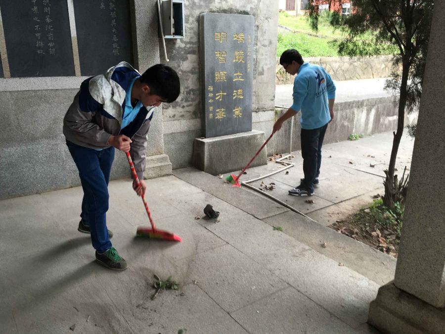一走进蔡襄陵园,同学们心情激动,思绪万千。活动开始后, 同学们立即各自忙碌起来。有的捡绿化带里的垃圾、清理大片落叶,有的拔陵园里疯长的野草,有的清扫陵园的长廊和台阶。同学们不怕苦不怕累,忙得不亦乐乎,不一会儿陵园就被打扫的干干净净。祭扫活动后,同学们参观纪念馆,进一步了解了先贤的事迹。