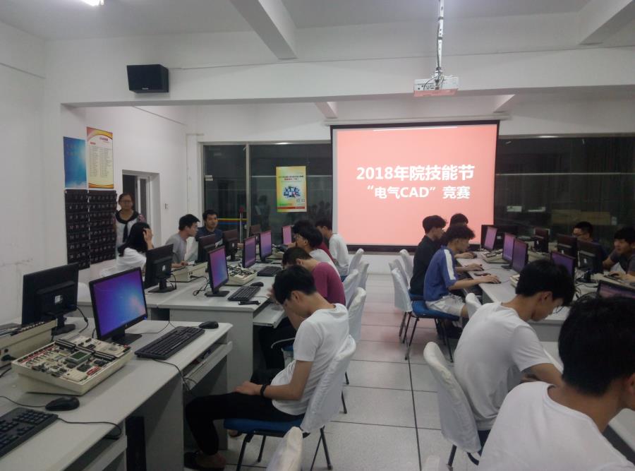 5月31日,2018年院技能比赛“电气CAD”项目在自动化实训中心电子技能理实一体实训室举行。共有28位同学报名参加。该竞赛项目通过绘制正反转电路来考核学生的CAD使用水平,最终评选出了一等奖3名,二等奖6名,三等奖8名。