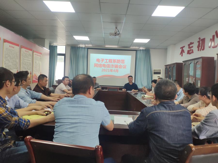 4月13日下午,电子工程系在公教一南404室召开了防范网络电信诈骗工作会议。系全体教职工参加了会议,会议由系书记陈满红主持。