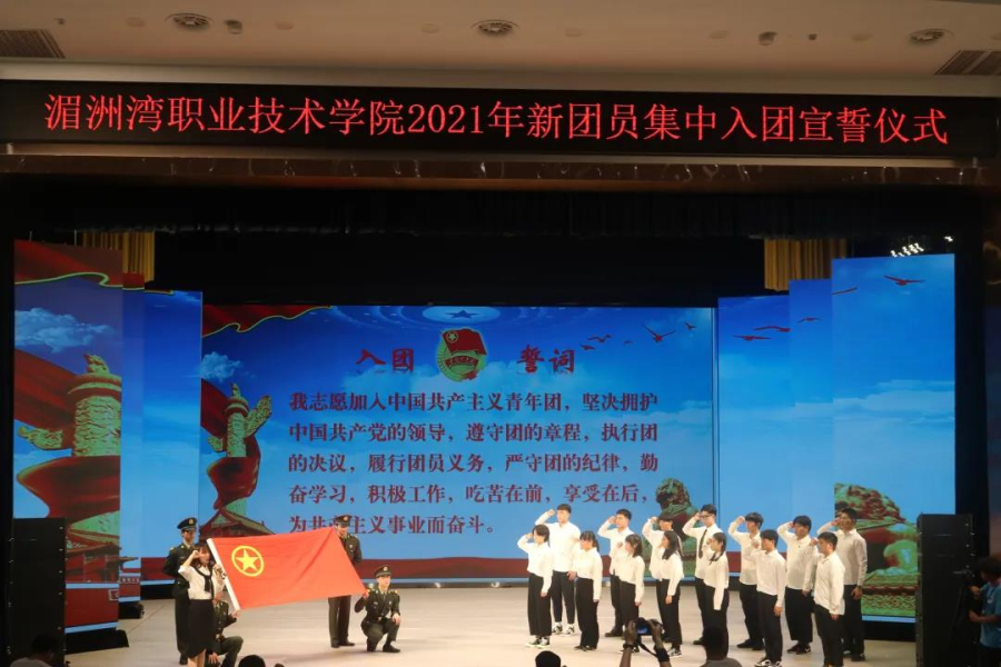为进一步加强我院共青团队伍建设,引导当代大学生坚定理想信念,弘扬民族精神,增强责任感和使命感。2021年4月27日下午2点在院团委带领下在立言大礼堂进行了新团员入团宣誓仪式。我系新入团的两位大一同学也参与了此次活动。入团宣誓活动流程首先由团委书记黄林毅发言,他宣读了2021年4月发展新团员文件,并总结2021年4月发展新团员情况,提出了以下三点要求:第一,认真学习团的章程,了解并熟悉共青团,履行好做团员的义务和责任。第二,以正确的思想理论作为指导,充分发挥模范带头作用;坚持与同学共勉,互帮互学,共同进步。第三,以“五个坚持”作为团员的行动指南:坚持高尚品行,坚持远大理想,坚持刻苦学习,坚持艰苦奋斗,坚持开拓创新。接着阐述了这个学期,学院各系共青团组织通过对多名优秀青年进行了考察,批准了多名优秀青年加入了中国共产主义青年团,指出他们将在这里向鲜艳的团旗庄严宣誓。接着入团宣誓仪式开始。
