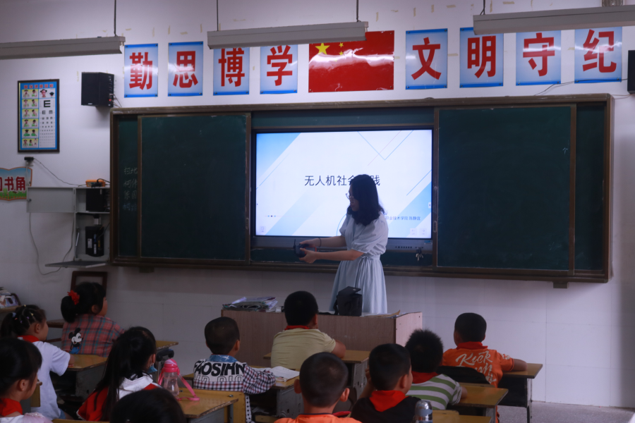 随后陈静宜老师以“无人机社会实践”为题,利用实体无人机现场展示,讲述了无人机在农业、拍摄、执法等领域的作用。开展科普宣传活动,激发了同学们爱科学、学科学、用科学的兴趣,拓宽同学们的科学视野,培养了同学们勤动手、善动脑、乐创造的科学素养和实践能力。