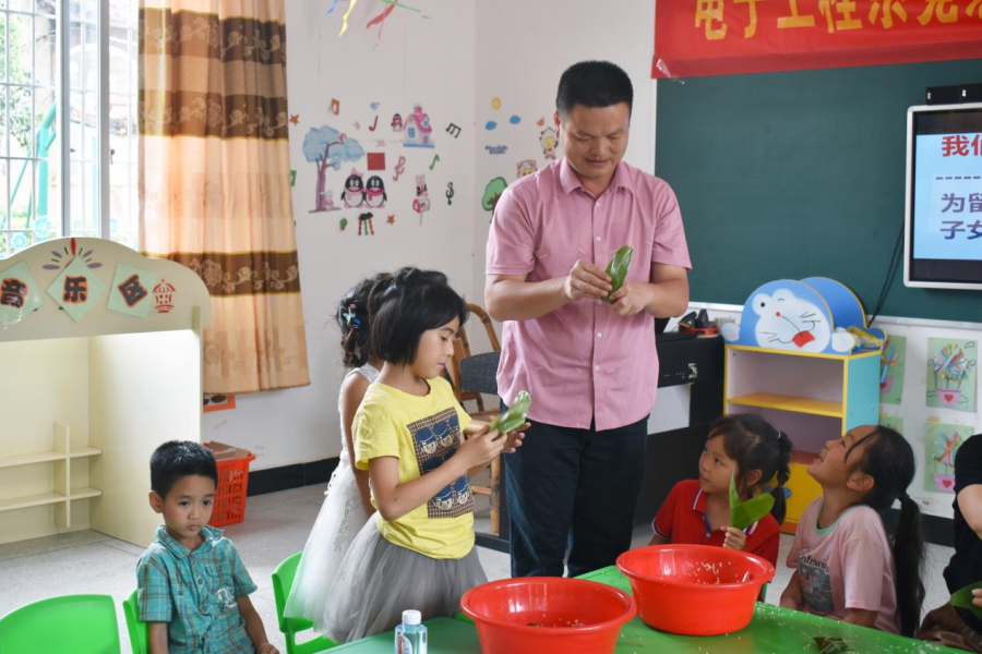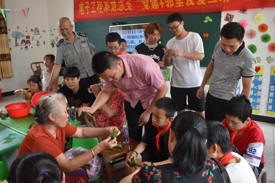 在端午节即将来临之际,为了让留守儿童在远离父母的日子里,也能感受到节日的氛围,过上温馨的端午节。6月10日电子工程系党总支组织部分师生党员代表,前往梧塘镇松东小学开展了邻里友爱互助党建活动,我系党总支书记陈满红、组织员杨娴、辅导员陈静宜、辅导员朱长山共同参与了此次活动。