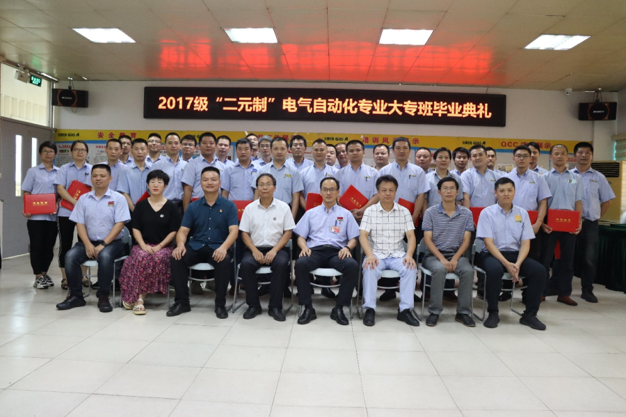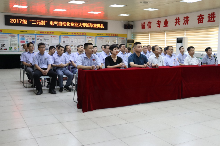 7月2日下午,我系首届“二元制”学生——“电气自动化技术”专业毕业典礼,在福建佳通轮胎有限公司举行。系主任佘明辉、系书记陈满红、系副主任陈辉煌、专业主任郑维清、辅导员杨娴,以及合作企业相关负责人等出席典礼。