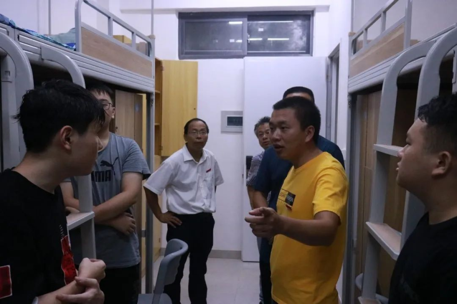 为了加强与新生的沟通,了解我系2021级新生的入住情况及排查宿舍安全隐患,引领新生更好的适应大学生活,9月9日晚,我系主任佘明辉、陈满红书记、系副主任陈辉煌、大一辅导员朱长山走访各新生寝室,并开展新生查寝慰问工作。