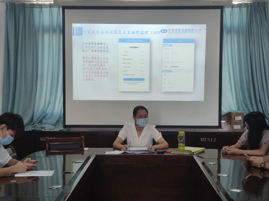 本次培训会议开始时,陈静宜老师对本次会议的流程、目的和要求进行介绍并宣布培训正式开始。首先,她用PPT辅助介绍了高等学校学生资助政策,从资助范围、资助标准、申请条件、申请时间、发放时间这五个方面依次进行了详细地讲解。同时说明了福建助学APP家庭经济情况信息采集的操作流程。