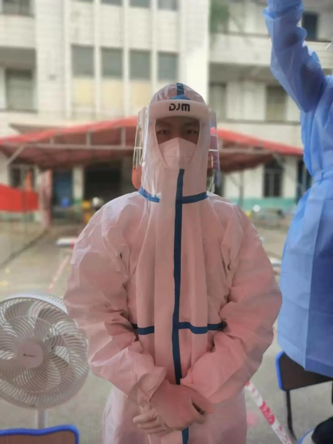 从莆田疫情爆发的9月15日开始,我跟随着志愿队的脚步,我穿上了防护服,带上医用外科橡胶手套,医用隔离面罩以及N95口罩全副武装的时候,我坚决地踏入了莆田市秀屿区笏石镇篁山小学的抗击疫情一线,面对着成千上万排队等待进行核酸检测的人民群众,我的压迫感从心里油然而生,心想绝对不能有任何一点点错误,不能给组织给国家拖后腿!我的工作被分配到新型冠状病毒核酸检测身份证信息录入。看着一张一张的身份证递到我的面前,我一张一张的录入,对好每一张的身份证信息以保证身份信息正确。由于灵川镇以及笏石镇已经被封锁,所以莆田市秀屿区笏石镇篁山小学采集点非常重要。在炎热的烈日骄阳下每个人的精神状态高度集中,没有一个人喊苦喊累,誓要消灭潜伏在人民群众之间的新型冠状病毒。为一些居家隔离和行动不方便的老人家需要采集核酸时,我们第一时间下乡到每家每户中一个个的进行核酸采集,哪里需要我们,我们绝对义不容辞。到现在已经完成了12轮的新型冠状病毒核酸检测。大家已经相处的十分默契,分工明确,效率以及速度大大提高。新型冠状病毒在莆田一日不消,我绝对一日不休!面对疫情我绝不退缩,和人民群众共同抗击新型冠状病毒!一定尽我最大的能力保护人民群众的生命健康安全!请党放心,强国有我,为抗疫贡献青春力量!