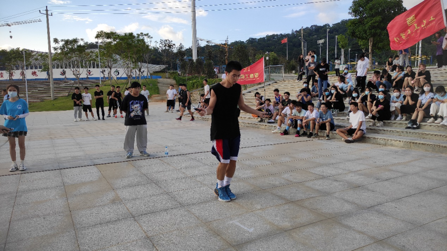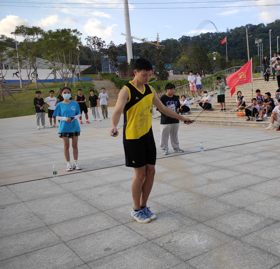 为丰富学生课外活动,营造和谐校园的良好氛围,展现大学生良好的精神风貌和积极进取的拼搏精神,增强各院系之间的相互联系。为此,我系于10月16日下午在主校区湄音广场参加2021年新生跳绳比赛。